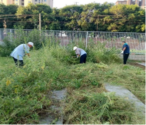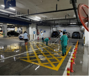 为营造舒适环境,暑假期间保洁员清洗车库、垃圾桶,清理楼道纸箱,对办公室旁的栽种区域、绿化带和生活区花砖上的杂草进行清理;对生活区高层电梯进行全部保养及消毒;清理雨后雨水井杂物及楼顶和路面积水;清理杂物及小广告;对生活区南区公园和幼儿园的绿植进行修剪及浇水。