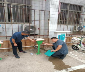 对室外掉漆的桌凳进行了喷漆更新,检查检修洗衣机、吹风机、淋浴、直饮水、充电桩、摆渡车设备,确保安全稳定运行。
