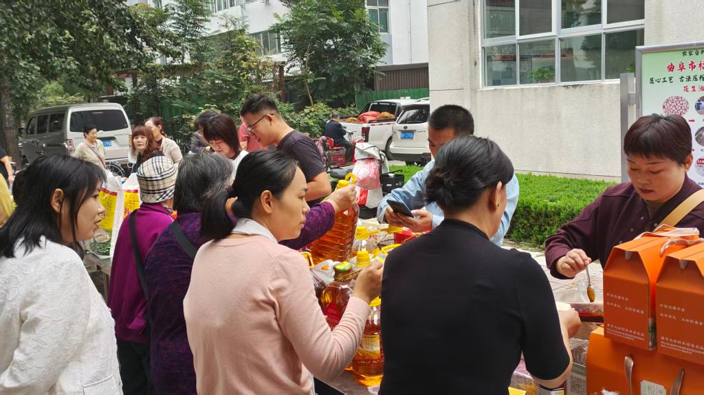 本次展销节汇聚了食堂大宗物资供应商及曲阜特色产品供应商等20余家企业参加,集中展销了米、面、粮油等食堂大宗食材以及粉条、豆腐、果蔬、生鲜肉等农副产品,校徽月饼、东阿阿胶、速冻快手食品等名优特产,较好的满足了师生多样化的味蕾需求。现场吸引了众多师生在展位前驻足咨询、品鉴和购买。